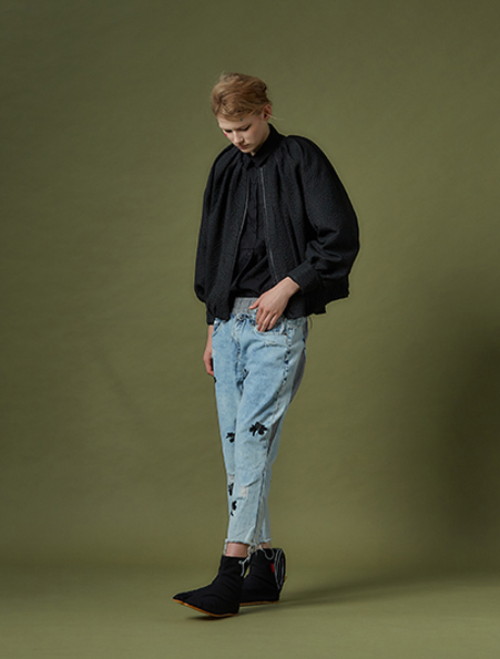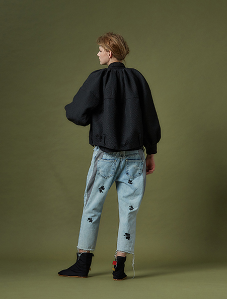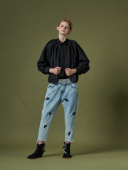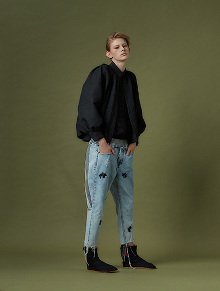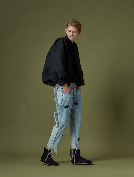2102D11古典細摺無領外套 黑 F